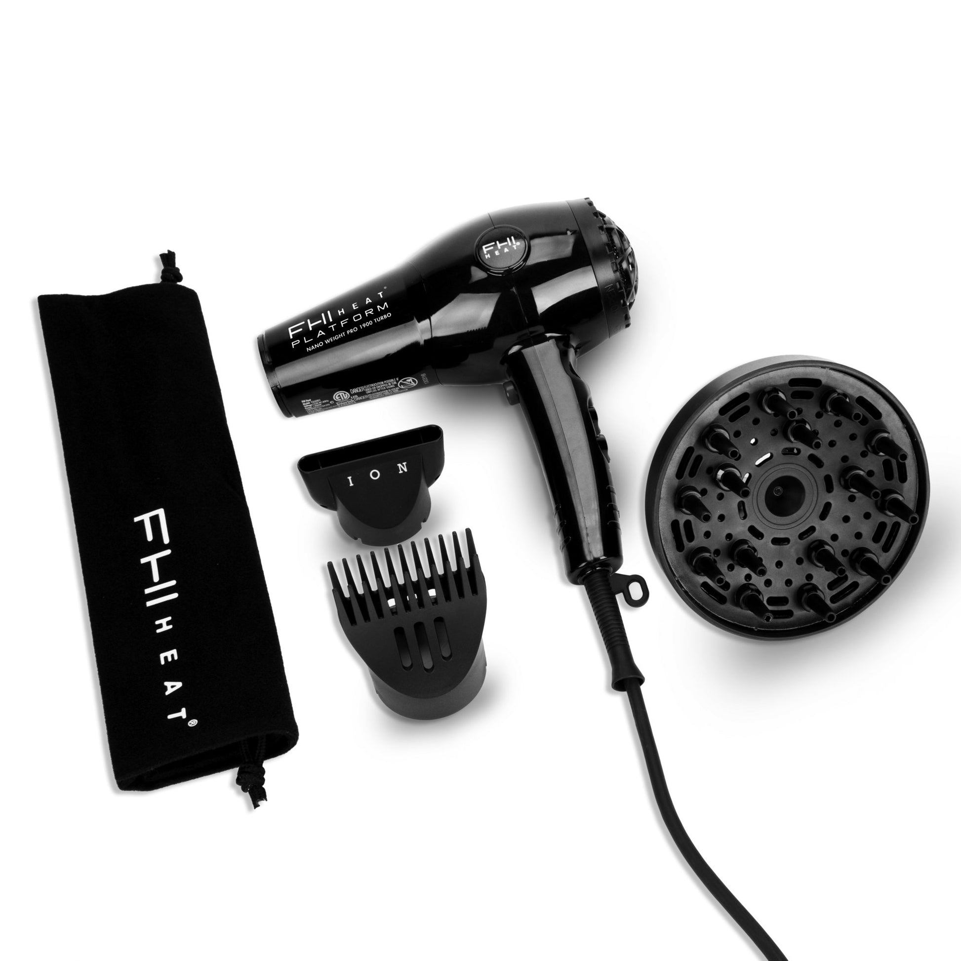 Includes speed-dry nozzle, curl defining diffuser, straightening comb, and protective storage bag.