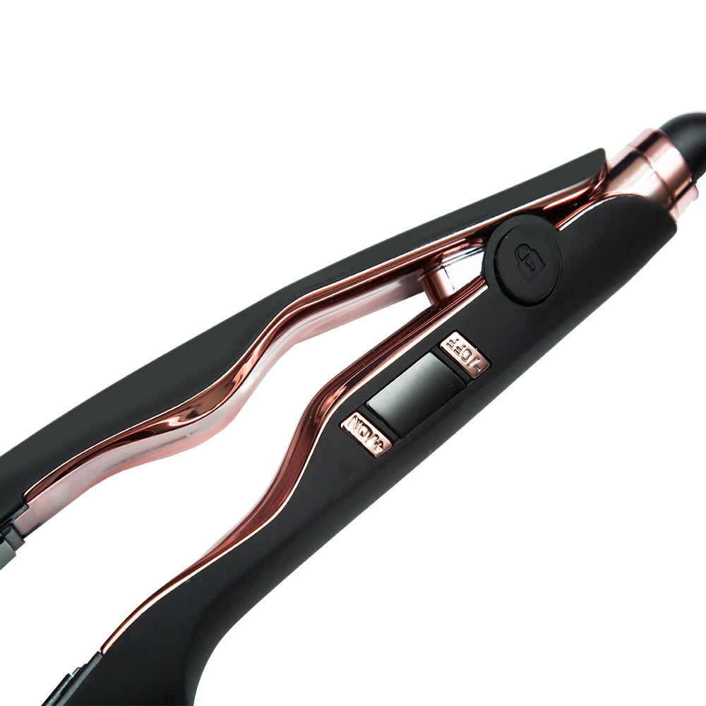 The Curve gets its name from its shape. Its beautiful curved design makes it incredibly ergonomic, fitting right to the curve of your hand. The unique curvature of the plates also allows the hair to glide effortlessly - allowing you to smooth, curl or wave hair in half the amount of time. It features tourmaline ceramic plates infused with magnesium to instantly lock in moisture. An instant heat up range from 265° to 450° degrees Fahrenheit, makes it ideal for all hair types.