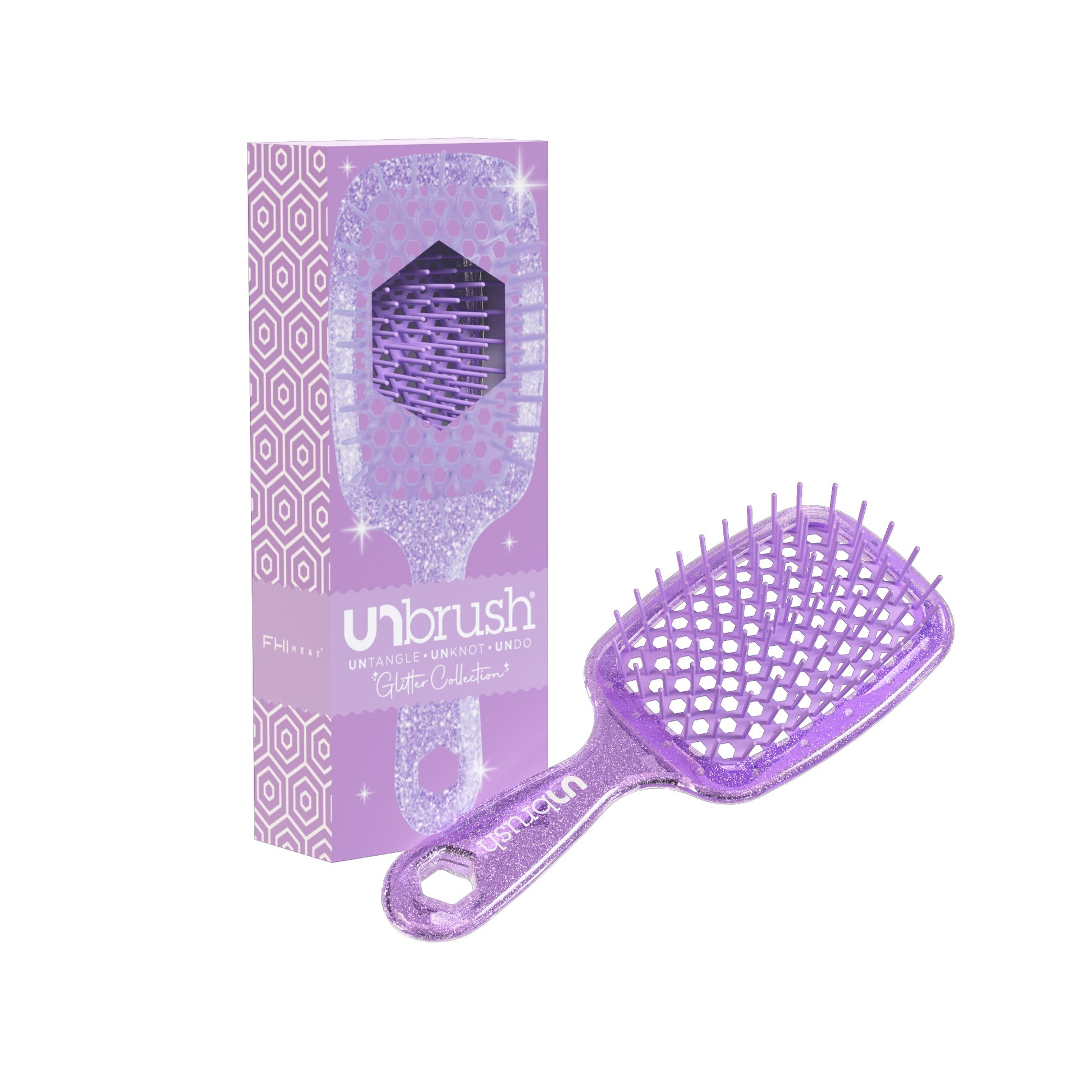 UNbrush® - Amethyst gently yet thoroughly extracts knots and tangles from even the most unruly hair, painlessly and effortlessly. Featuring the perfect blend of 105 dual length bristles, combined with an ultralight high performance handle, UNbrush® helps reduce styling time and prevents hair from catching. Great for wet or dry hair.