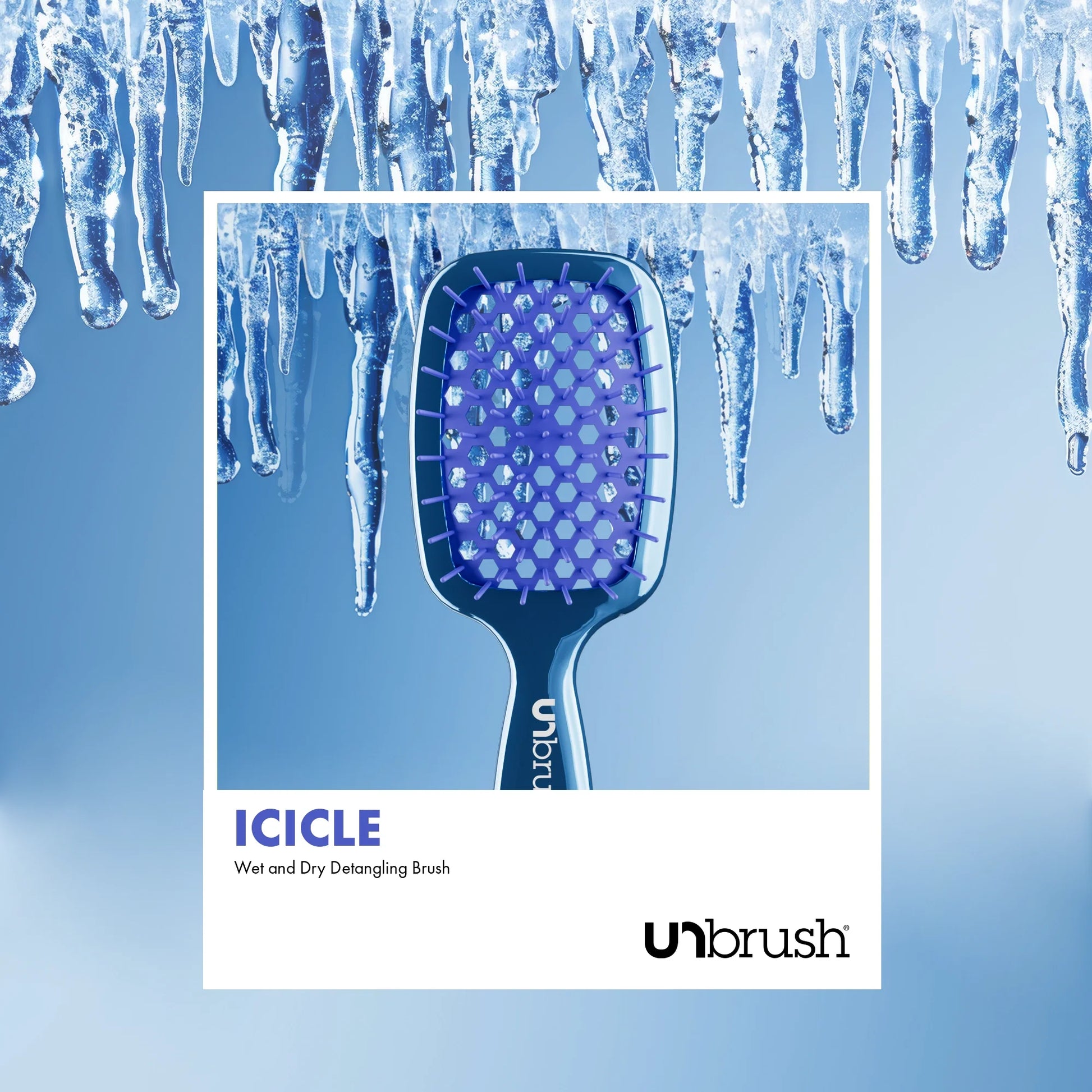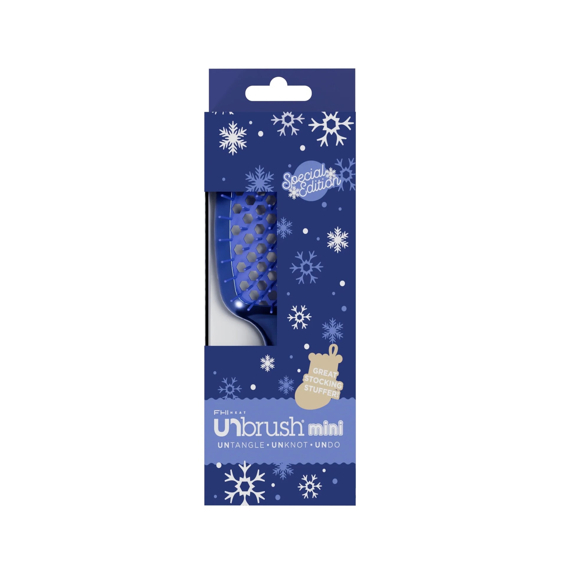 UNbrush® Mini - Icicle Chrome Blue is the go to travel companion! The perfect blend of dual length bristles, combined with an ultralight mini handle, UNbrush® Mini painlessly and effortlessly extracts knots and tangles from even the most unruly hair. Its compact size makes it great for travel!
