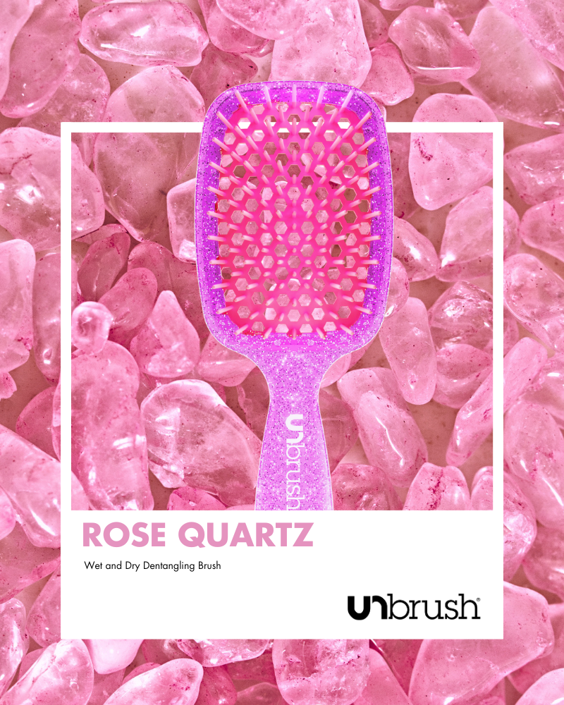 UNbrush® - Rose Quartz gently yet thoroughly extracts knots and tangles from even the most unruly hair, painlessly and effortlessly. Featuring the perfect blend of 105 dual length bristles, combined with an ultralight high performance handle, UNbrush® helps reduce styling time and prevents hair from catching. Great for wet or dry hair.